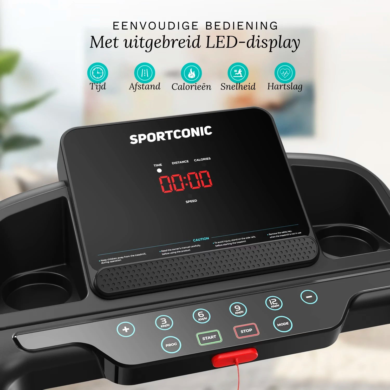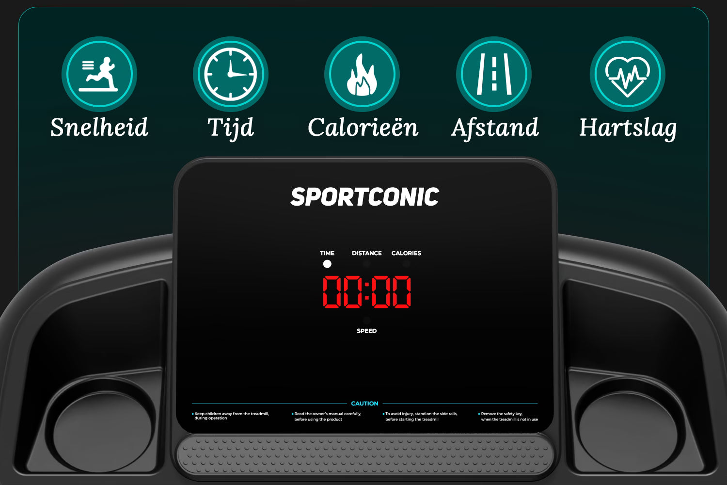 Traka za trčanje ima svijetli LED zaslon koji vam u stvarnom vremenu prikazuje udaljenost, vrijeme, brzinu, otkucaje srca i potrošene kalorije.